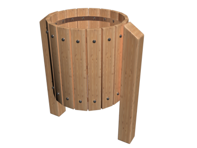 Basurero, de 50x30x80 cm y 26 litros de capacidad, con cuerpo de madera, colocación con taco químico, arandela y tornillo. | ||