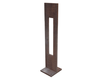 Estacionamiento para 2 bicicletas, de plancha de acero corten acabado granallado silueteada mediante oxicorte, colocación con taco químico, arandela y tornillo.