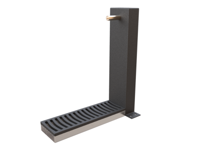 Fuente de 120 cm de altura, con cuerpo de fundición de hierro con protección antioxidante y pintura de color negro, caño y pulsador de fundición de latón y rejilla de fundición de hierro pintada en color negro, colocación con marco de acero galvanizado y pernos de anclaje. | ||
