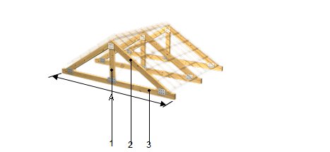 Cercha ligera de 6 m de luz, pendiente 30%, formada por elementos de madera aserrada de pino, de 70x70 mm de sección, con acabado cepillado; conexiones con herrajes de acero galvanizado tipo DX51D+Z275N y tornillos rosca-metal de acero cincado, para ensamble de estructuras de madera; separación entre cerchas hasta 5 m. | ||