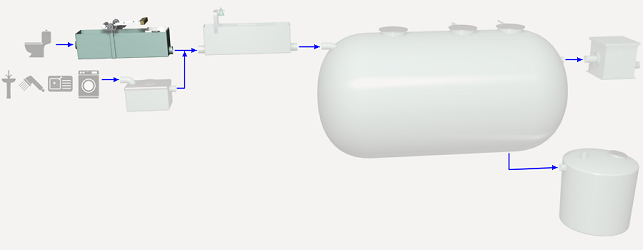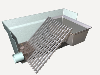 Caja de revisión de desbaste de poliéster reforzado con fibra de vidrio (PRFV), de 950x595x475 mm, con boca de entrada y boca de salida, de 110 mm de diámetro, tapa, reja de gruesos, cesta extraíble y rastrillo. | ||